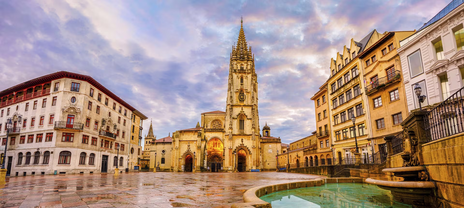 Begin your visit in the heart of the city at the vibrant Plaza del Fontán. This lively square is full of cafés, markets, and colourful buildings. Moreover, it is one of the best places to enjoy the local atmosphere while sipping a drink or trying traditional Asturian snacks. The cheerful energy here makes it a perfect starting point for your Oviedo adventure.