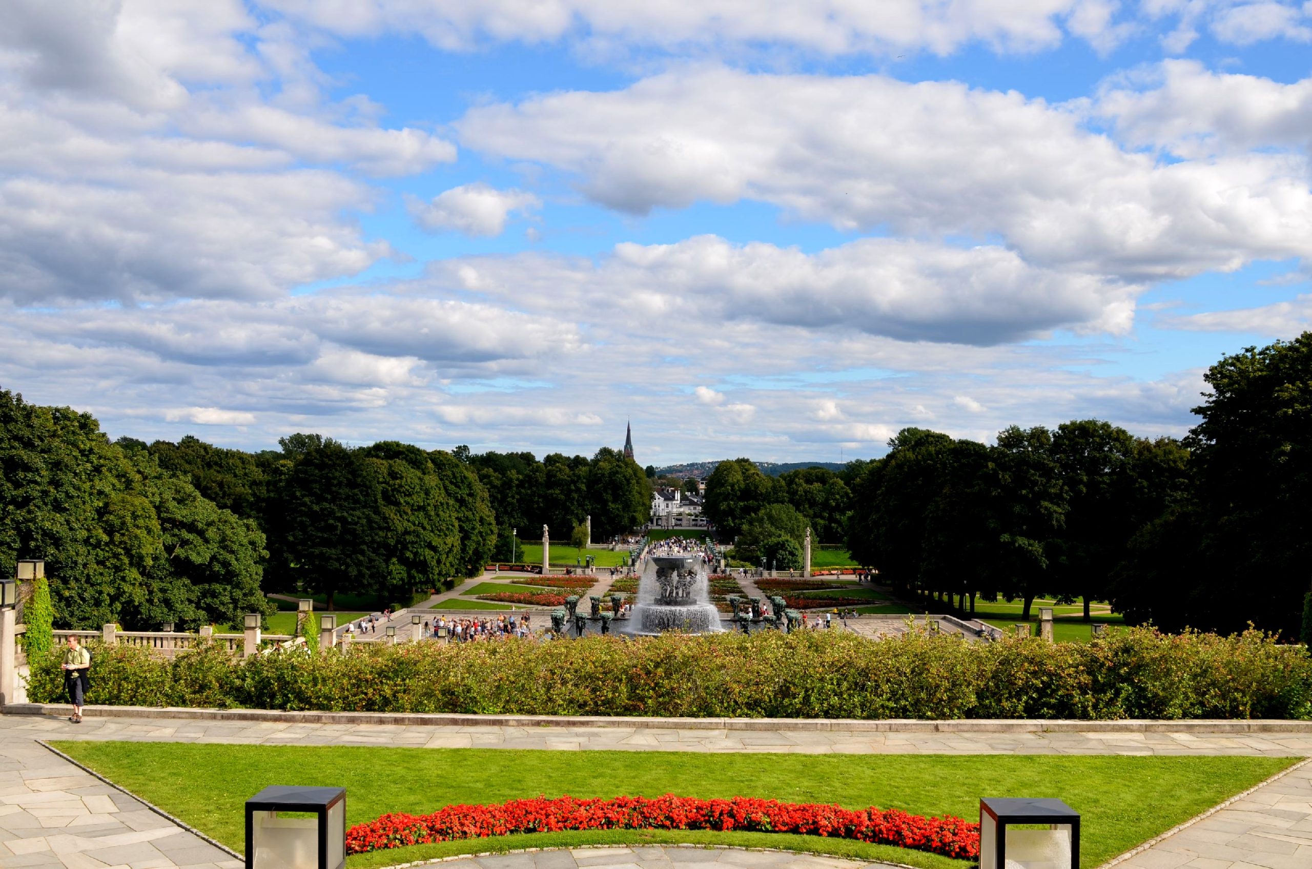 Frogner Park, in Oslo’s eponymous neighborhood, welcomes visitors free of charge at any time of year. It delights visitors with 212 bronze and granite sculptures by 20th-century sculptor Gustav Vigeland. Vigeland’s works follow a Realist style, with odd topics ranging from a man battling newborns to a lady riding with her platted hair as reins. Moreover, many pieces like Angry Boy (Sinnataggen) have become symbols of Oslo. Specifically, The Bridge – a 100-meter-long installation – connects the eastern Entrance Gates to the Fountain. Learn more at the official Vigeland Museum website.